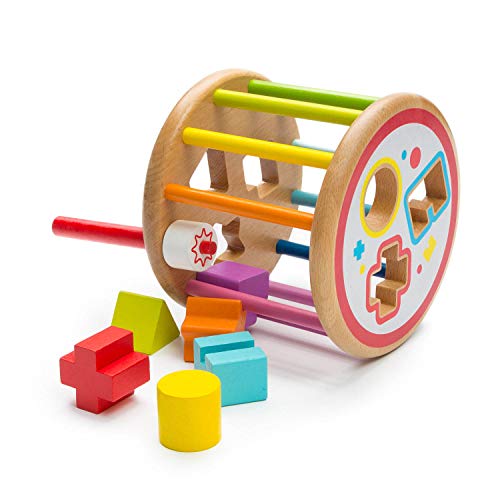 🌈 𝗞𝗟𝗘𝗨𝗥𝗥𝗜𝗝𝗞 𝗛𝗢𝗨𝗧𝗘𝗡 𝗦𝗣𝗘𝗘𝗟𝗚𝗢𝗘𝗗 – het mooie kindvriendelijke ontwerp van het educatief speelgoed is gemaakt van duurzaam en milieuvriendelijk FSC-gecertificeerd grenenhout. Afmetingen van de vormenrol ca. 16 x 16 x 14 cm.