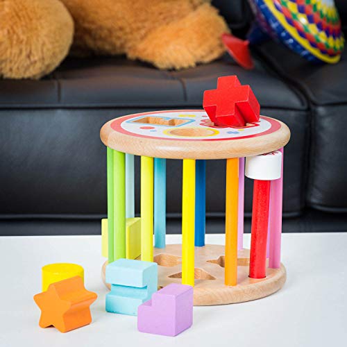 Specificaties: all Kids United Baby educatief speelgoed sorteerspel van hout vormrol sorteerkubus houten speelgoed sorteerbox; kleurrijke steekkubus met 2 moeilijkheidsgraden